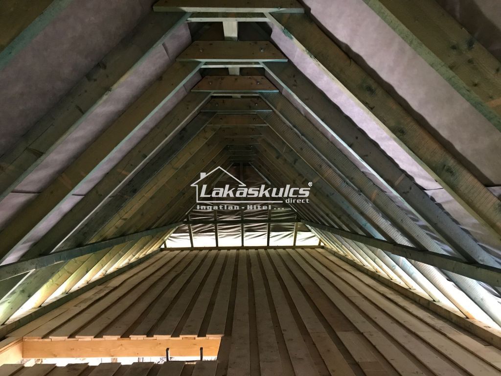 70 m2-es hálószoba nappalis szerkezetkész állapotú lakóház, tetőtér-beépítési előkészítéssel (50 m2) megvásárolható.