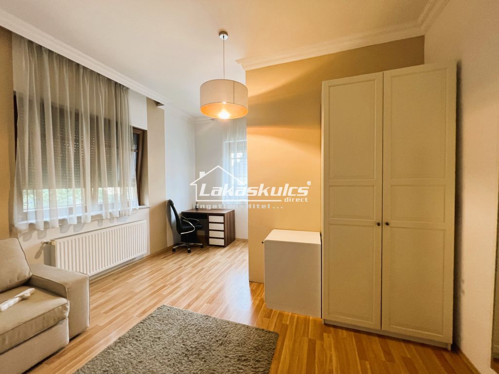 Csendes, barátságos környéken, mégis közel a belvároshoz (pár perc séta) kínáljuk bérbe ezt a 380 m²-es ingatlant (301 m² lakótér, 44 m² dupla garázs, 35 m² pince/klubhelyiség) 537 m²-es telken.