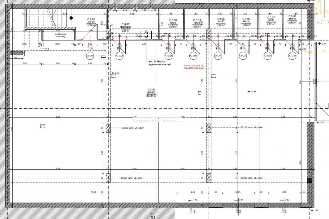 Alsó szinten: tárolók és teremgarázsok